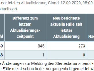 Übersicht Bayern – Welt Tabelle 01: Coronavirusinfektionen, Stand: 12.09.2020, 08:00 […mehr]