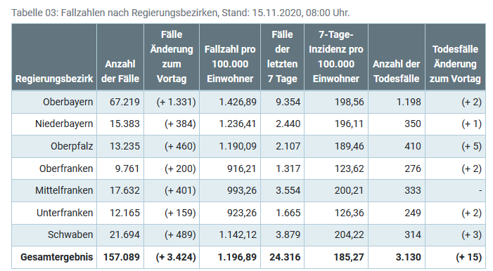 Von der Gesamtzahl der Fälle in Bayern (s. o.) gelten 102.900 als genesen. Die Anzahl der Genesenen beruht auf einer Schätzung, die sich an den Kriterien des RKI orientiert. Fälle gelten als genesen, wenn kein Tod eingetreten ist und