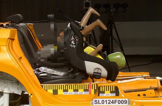Die im Rahmen des Verbraucherschutztests durchgeführten Frontalaufprallversuche sind von der Unfallschwere an den Fahrzeugcrashtest von Euro NCAP (versetzter Frontalaufprall mit 64 km/h) angelehnt. Auf die Testprodukte wirken dabei deutlich höhere Kräfte als bei den gemäß UN Reg. 129 gesetzlich vorgeschriebenen Zulassungsversuchen für Kindersitze, die auch der betroffene „Peg Perego“-Sitze erfüllt.