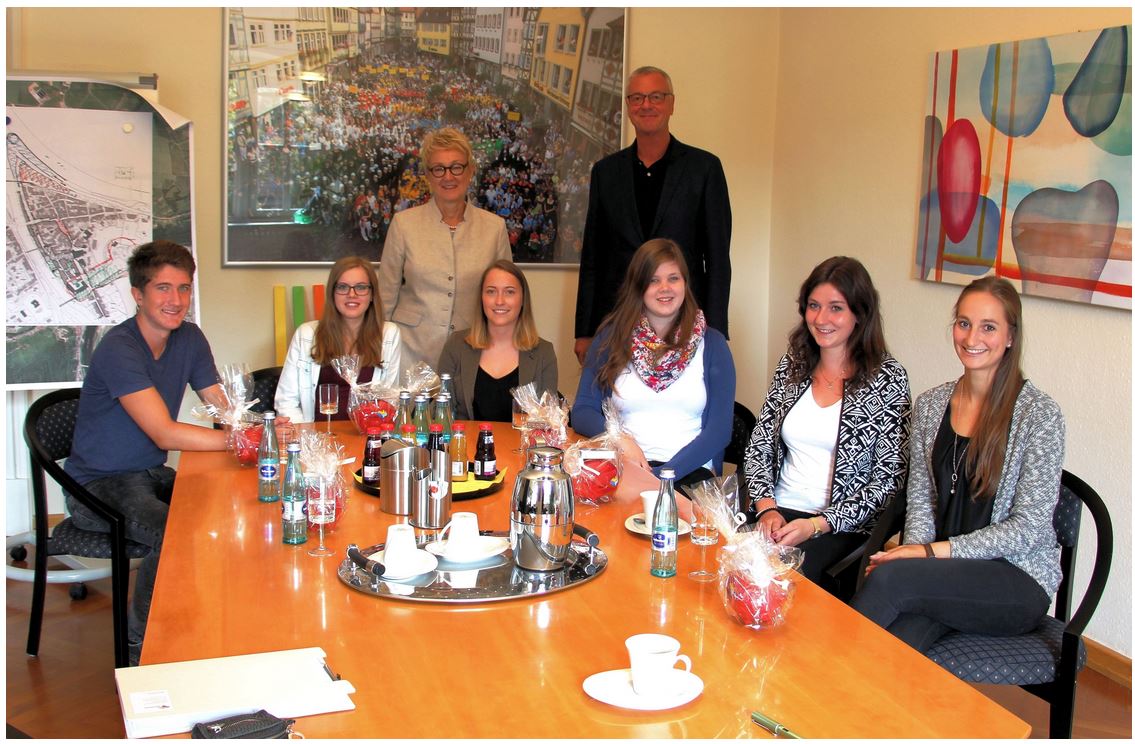 – im Rathaus: Ann-Kathrin Blatz und Aileen Di Maggio (Bachelor of Arts, Public Management), Pauline Hermann, Katharina Krebs und Laura Schäfer (Verwaltungsfachangestellte) sowie Felix Löscher (Bauzeichner, Schwerpunkt Architektur)