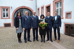 v.l.n.r. Erste Bürgermeisterin Helga Schmidt-Neder, Polizeipräsident Gerhard Kallert, Erster Polizeihauptkommissar Wolfgang Gmelch mit Ehefrau Christiane, Polizeioberkommissar Nicolas Rumpel und Landrat Thomas Schiebel