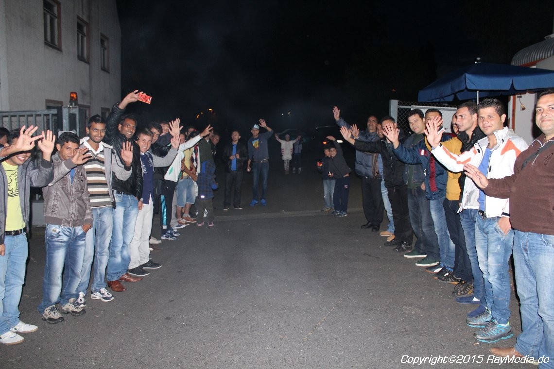 Etwa 2000 Menschen kamen dem Aufruf  „Wertheim zeigt Flagge“ Demo gegen den Brandanschlag Lea Reinhardshof nach und versammelten sich vor der Halle ,die einem Brandanschlag zum Opfer fiel .Nach einer Gedenkminute lief die Gruppe gemeinsam  zur LEA Reinhardshof  wo man sich mit den dortigen Flüchtlingen traf und sich herzlichst begrüßte und umarmte.Nach einem gemeinsamen Christlichen und Muslimischem Gebet freuten sich alle anwesenden über diese Art der gemeinsamen Verständigung und verurteilten den Feigen Brandanschlag.Auch Frau Dr.Dorothee Schlegel  , Mitglied des Deutschen Bundestages, verurteilte den heutigen Anschlag und war berührt von der Masse von Menschen die gekommen waren um diesen Anschlag zu ächten und zu zeigen das Wertheim und Deutschland ein Menschenfreundliche Stadt und Land ist.