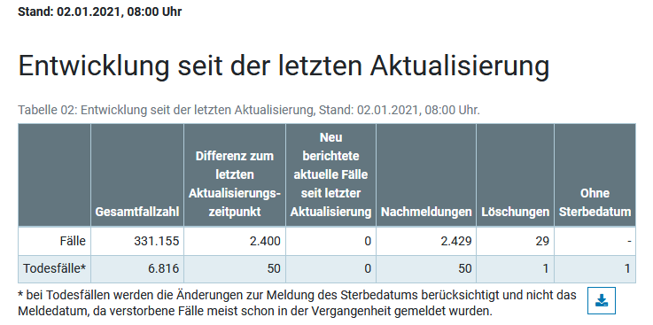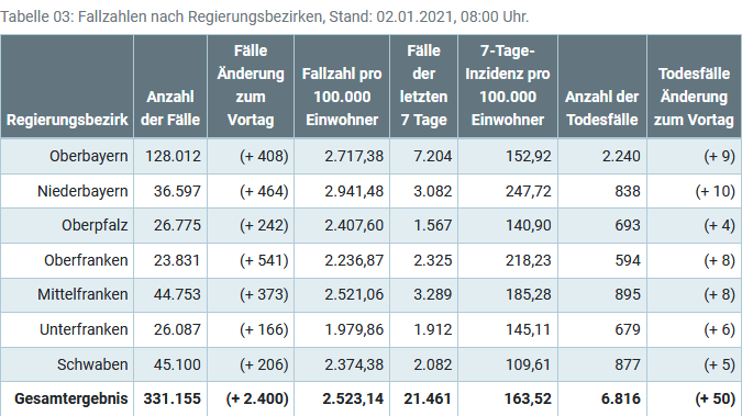 COVID-19: Fallzahlen Baden-Württemberg, Bayern, Hessen – 111 Todesfälle – Stand 02.01.2021