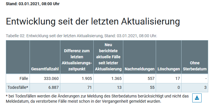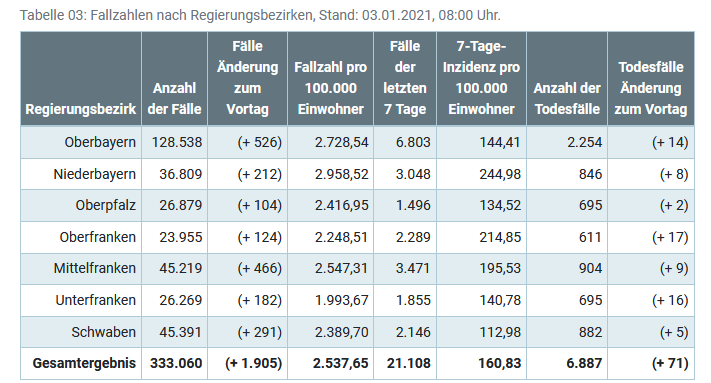 COVID-19: Fallzahlen Baden-Württemberg, Bayern, Hessen – 138 Todesfälle – Stand 03.01.2021