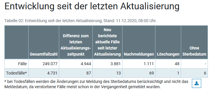 Am Freitag, 11. Dezember 2020, hat das Landesgesundheitsamt (LGA) Baden-Württemberg insgesamt weitere 3.798 bestätigte Infektionen mit dem Coronavirus gemeldet (Stand: 16.00 Uhr, siehe Tabelle im Tagesbericht COVID-19 (PDF)). Damit steigt die Zahl der seit Beginn der Pandemie Infizierten in Baden-Württemberg auf mindestens 182.951 an. Davon sind ungefähr 128.299 (+2.584) Personen bereits wieder von ihrer Covid-19-Erkrankung genesen. Derzeit sind geschätzt 51.300 (+1.153) Menschen im Land mit dem Coronavirus (SARS-CoV-2) infiziert.