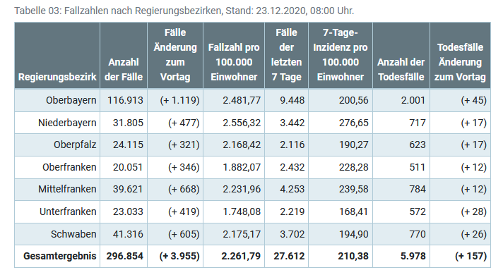 COVID-19: Fallzahlen Baden-Württemberg, Bayern, Hessen – 317 Todesfälle – Stand 23.12.2020
