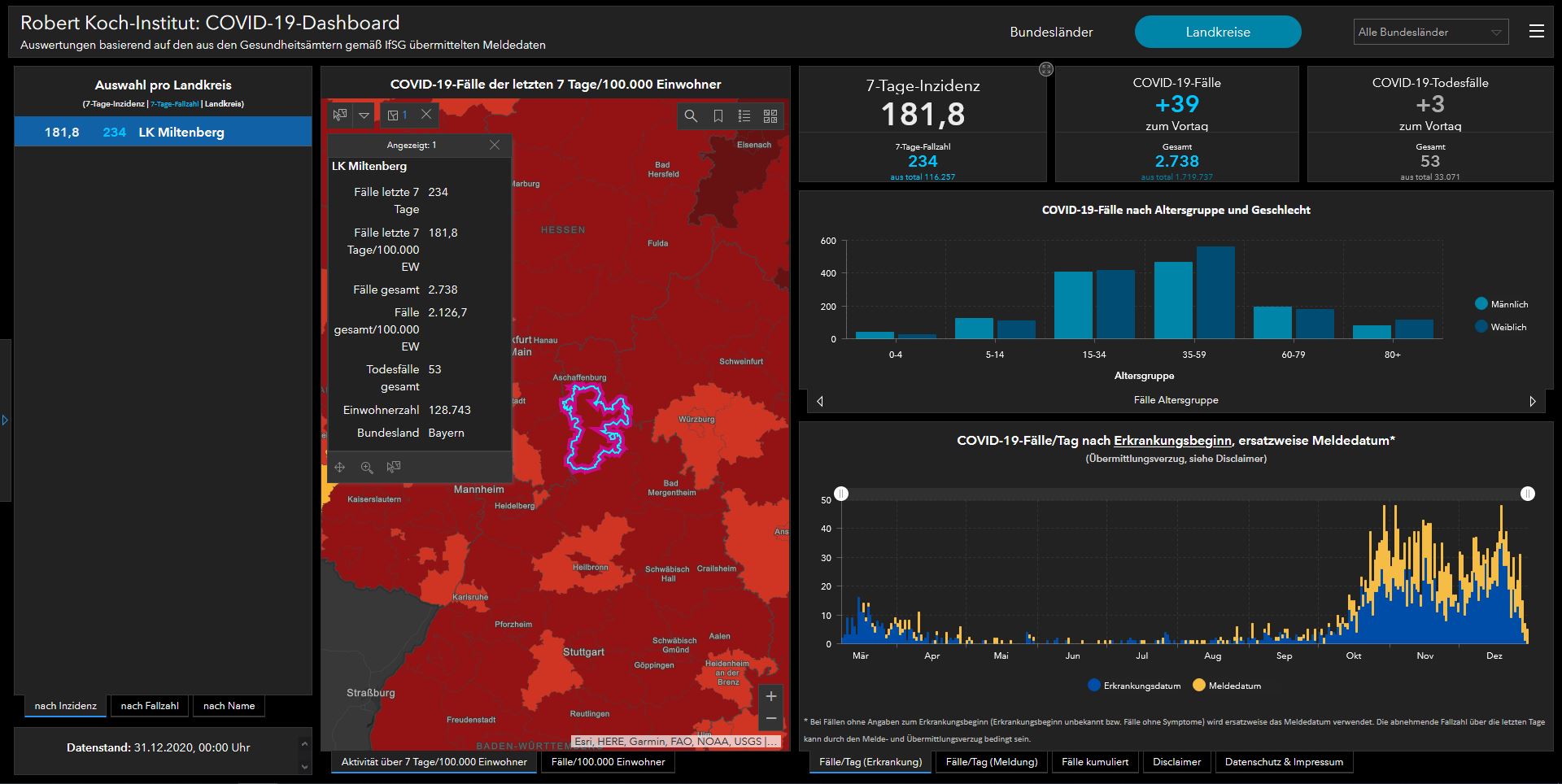 COVID-19 Fallzahlen: Landkreise Main-Spessart, Miltenberg, Aschaffenburg, Würzburg, Neckar-Odenwald und Hohenlohe Stand 31.12.2020