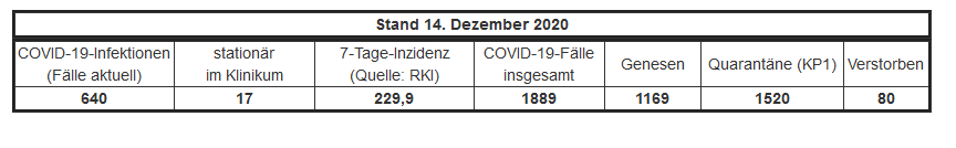 COVID-19: Fallzahlen Landkreise Main-Spessart, Miltenberg, Würzburg und Neckar-Odenwald-Kreis – Stand 14.12.2020