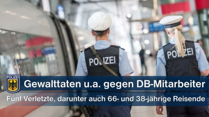 Fünf Verletzte bei Gewalttaten gegen DB-Mitarbeiter und Reisende, darunter drei DB-Mitarbeiter, eine 66-jährige sowie ein 38-jähriger Reisender