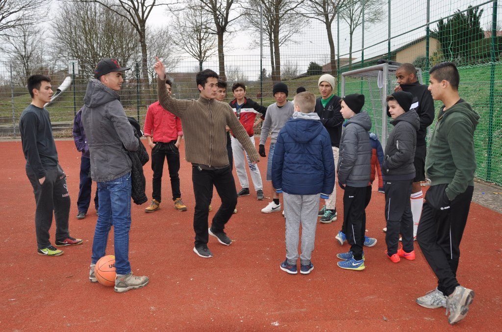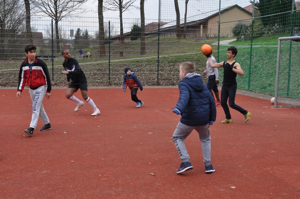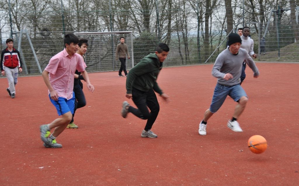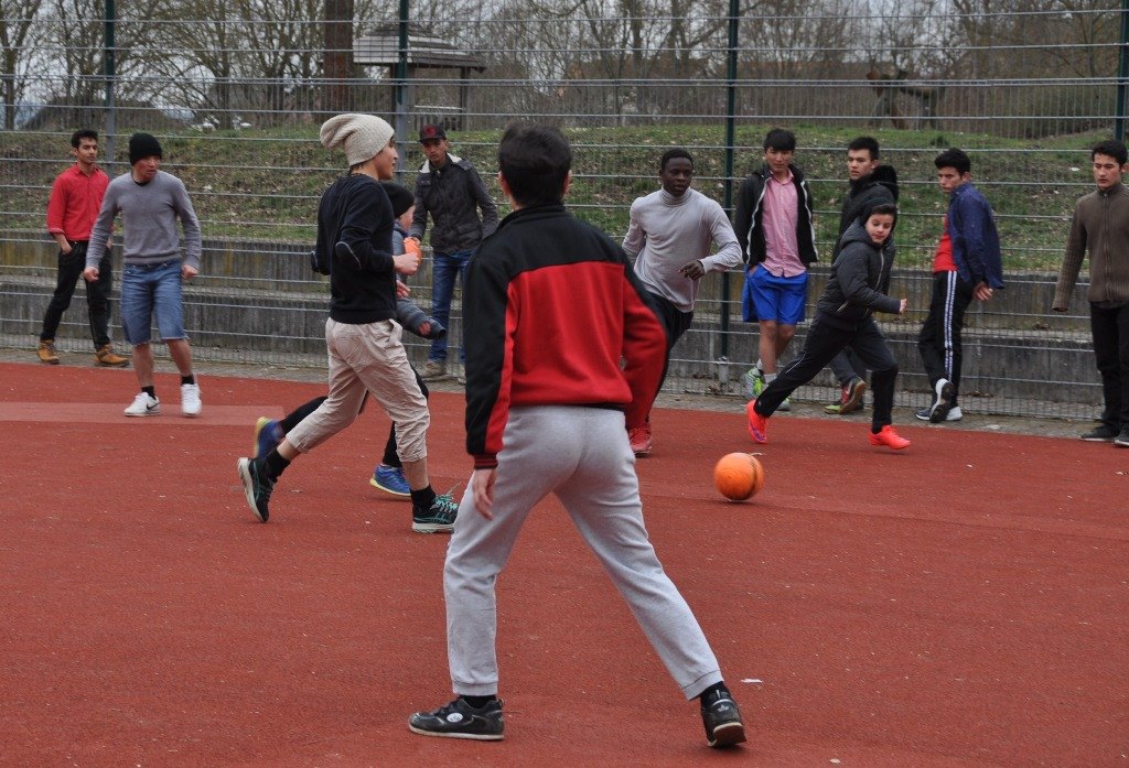 Ein Dutzend junger Flüchtlinge aus dem „Camp“, vor allem Afghanen, hat sich gerade warm gespielt. Sechs Jungs aus dem Stadtteil Reinhardshof kommen hinzu und signalisieren, dass sie mitspielen wollen. Die Spielregeln werden auf Englisch, mit Händen und Füßen ausgehandelt, und dann geht´s los. Die Fußballer aus dem Stadtteil sind deutlich jünger als die Sportler aus der Lea, aber sie genießen Respekt, denn sie spielen schnell und gut.