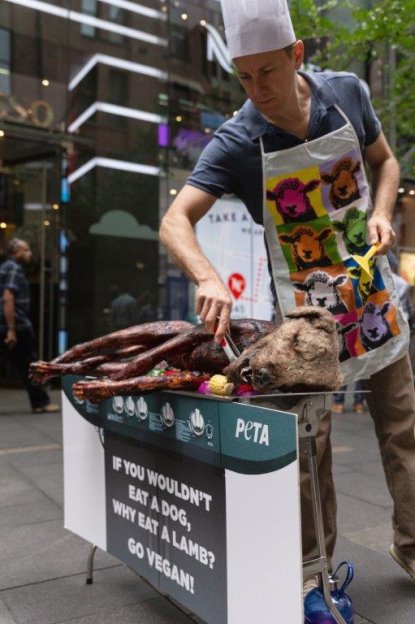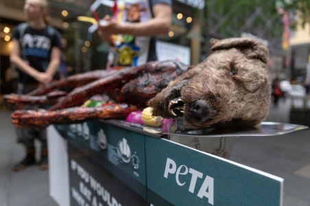 Mit einer ähnlichen Aktion informierte PETA in Sydney über die Thematik.
