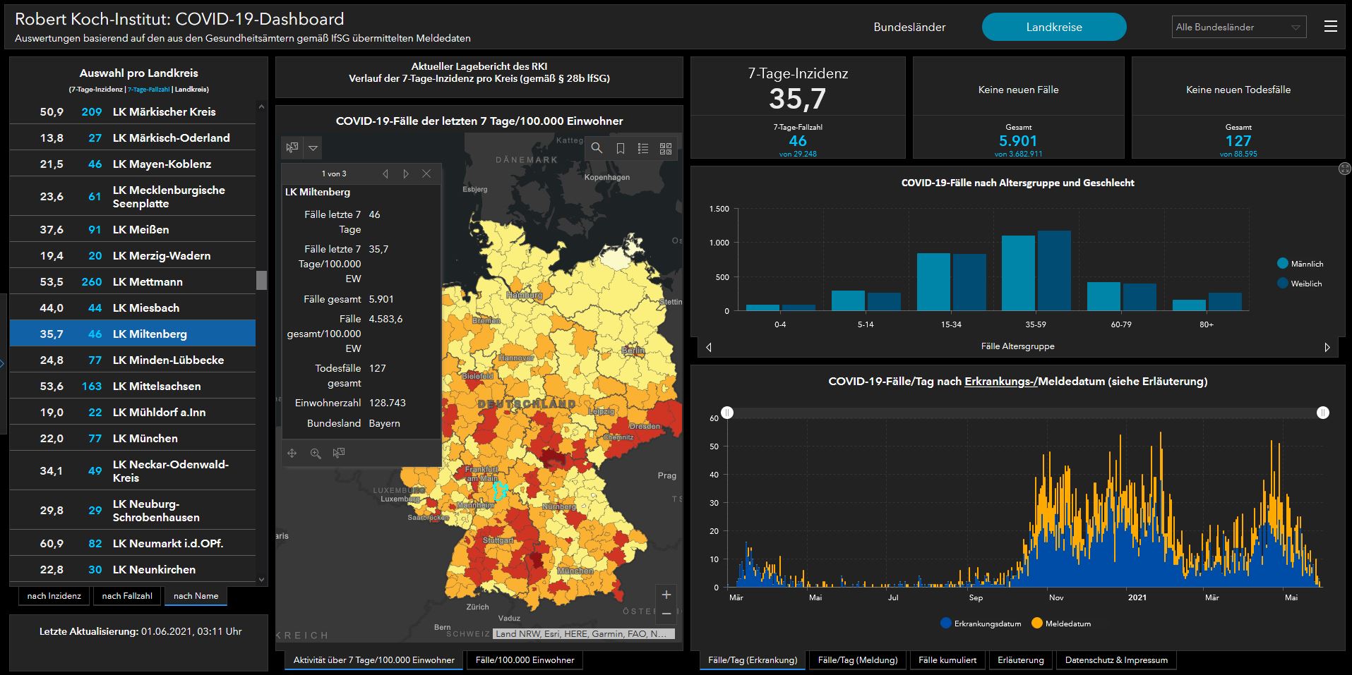 Aktuell befinden sich 136 mit SARS-CoV-2 infizierte Personen in Isolation und Überwachung durch das Staatliche Gesundheitsamt Miltenberg. Seit gestern kamen vier Neuinfektionen hinzu. Zusätzlich befinden sich 91 Menschen als Kontaktperson I in Quarantäne. Zur Zeit werden sieben Menschen aus dem Landkreis stationär behandelt, davon ist eine Person intensivpflichtig. Es gab keine neuen Todesfälle. Die Anzahl der bekannt gewordenen Coronavirus-Infektionen beläuft sich auf 6.004 Fälle. Die Sieben-Tage-Inzidenz liegt im Landkreis derzeit bei 35,7 (Quelle: RKI, Stand 1. Juni, 3:11 Uhr).