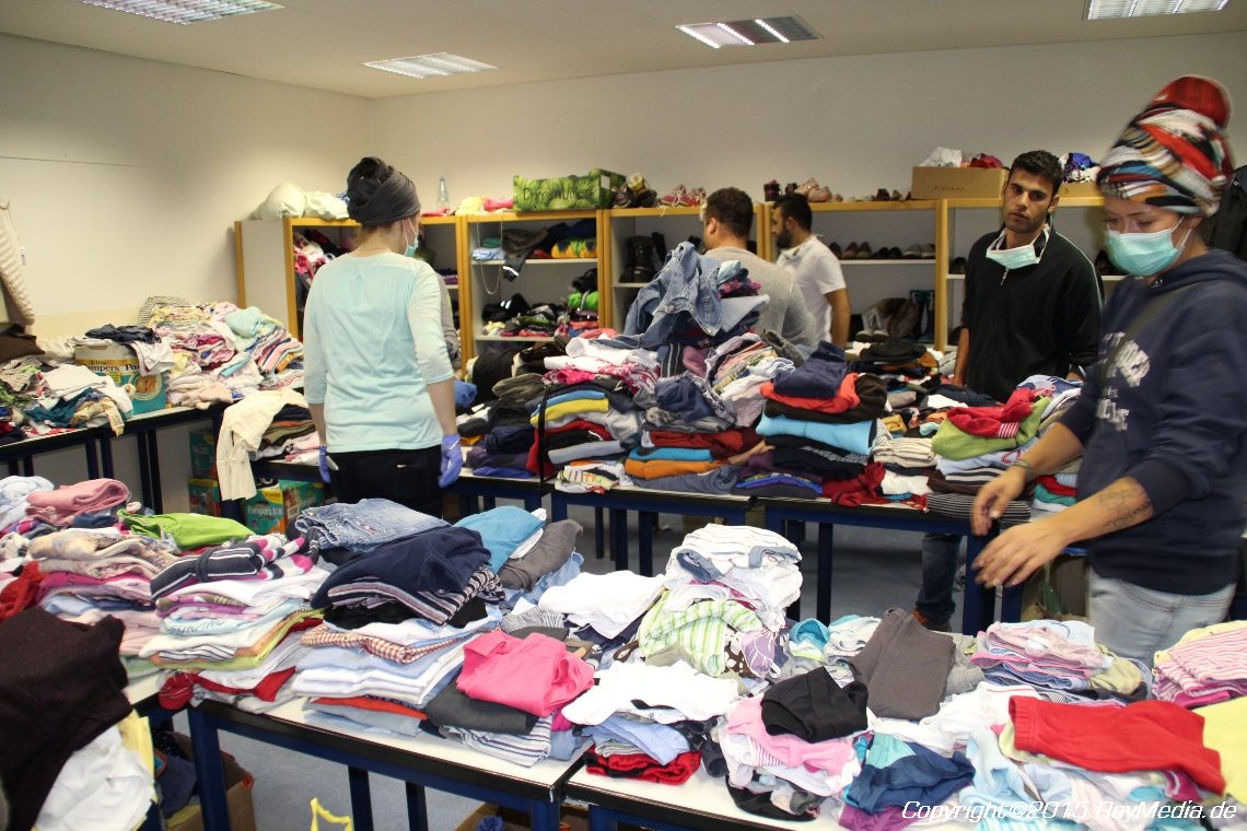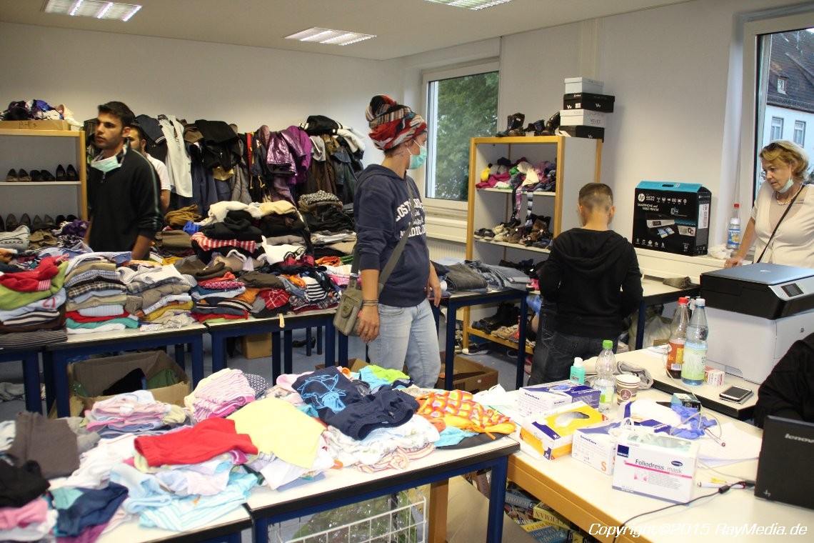 Bürgermeister Stein machte, unterstützt von Clemens Bohnacker, deutlich, dass die Kapazität in Wertheim mit 600 Flüchtlingen erschöpft ist. Der Lehrsaal, der als Speisesaal fungiert, ist mit 100 Menschen voll. Es werden größere Gemeinschaftsräume gebraucht für Kinderbetreuung, Kleiderkammer, ärztlichen Dienst usw. In den am Sonntag aufgebauten provisorischen Strukturen gerate man jetzt schon an Grenzen.