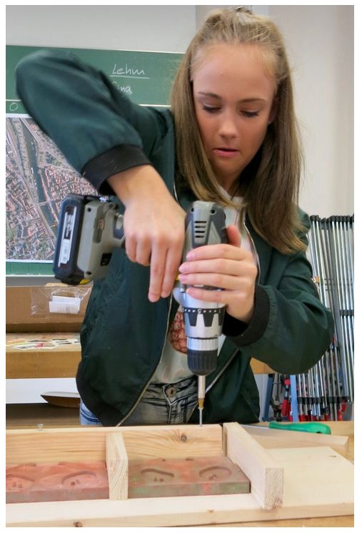 Vor allem die Mädchen arbeiten begeistert mit in der „Lernwerkstatt BauHandWerk.“ Foto: Gemeinschaftsschule Wertheim