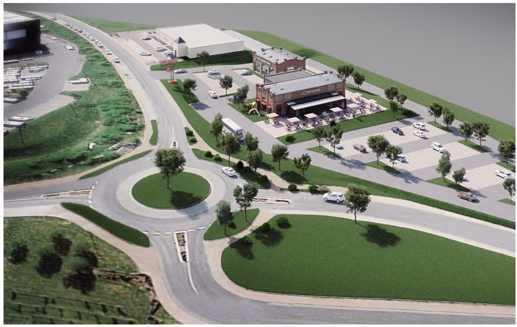 Dazu will L´Osteria ein rund 11.000 Quadratmeter großes Grundstück von der Stadt erwerben. Es liegt zwischen der Schokoladenmanufaktur Art of Chocolate und dem Kreisverkehr zum Wertheim-Village. Auf dem Areal soll ein zweigeschossiges Restaurant (220 Sitzplätze) mit offener Küche und Wintergarten (90 Sitzplätze) entstehen. Vorgesehen sind auch eine große Terrasse und ein Kinderspielplatz in Sichtweite.