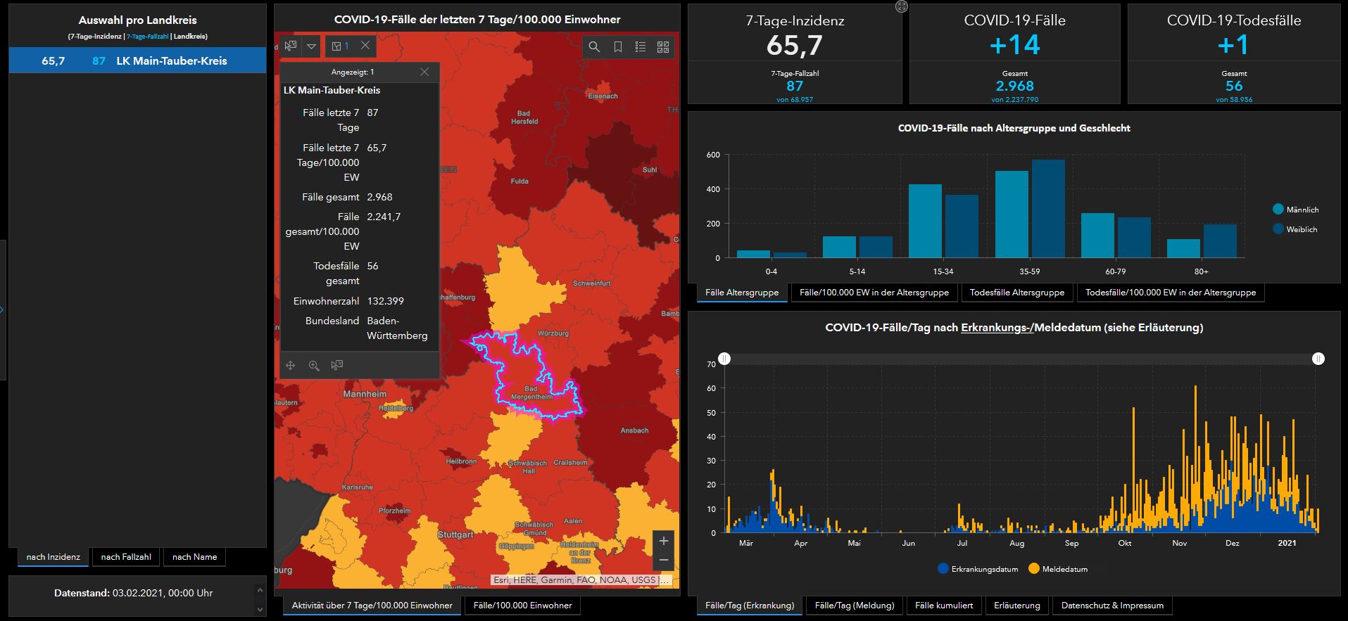 Main-Tauber-Kreis/Wertheim: 14 Coronavirus-Infektion – 1 Todesfall – 7-Tage-Inzidenz 65,7 – Zahlen 03.Februar.2021