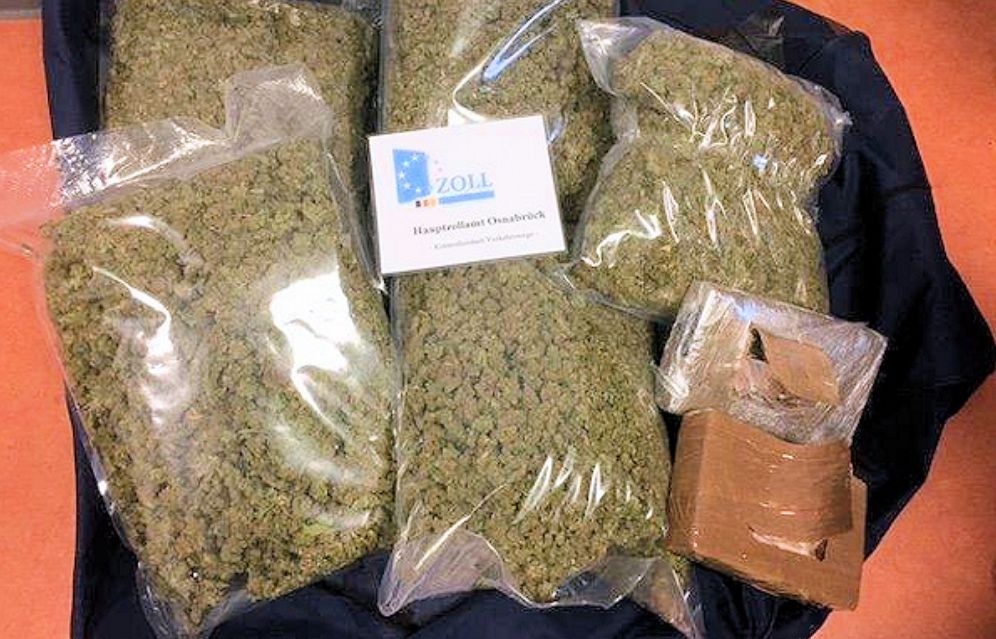 Fünf Kilogramm Marihuana und 2,3 Kilogramm Kokain entdeckten Osnabrücker Zöllner am Nachmittag des 30. Oktober 2016 bei einer Fahrzeugkontrolle auf dem Rastplatz Waldseite Süd an der Autobahn 30 in einem zuvor aus den Niederlanden eingereisten Pkw.