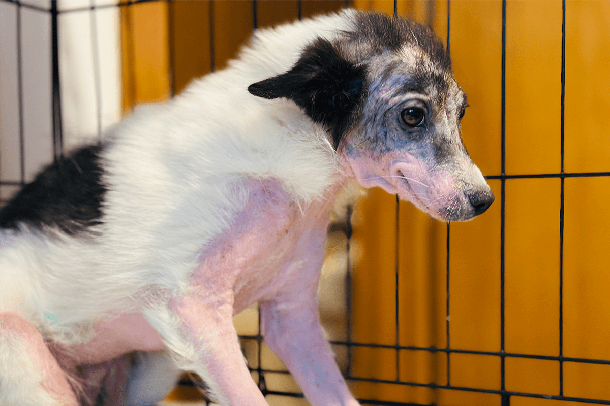 Mittlerweile geht es Carla schon viel besser. Ein offensichtliches Zeichen: Dank der medizinischen Behandlung wachsen der kleinen Hündin nun auch wieder Haare. Wenn unser Team die Hündin morgens begrüßt, wedelt sie vorsichtig mit ihrem Schwanz.