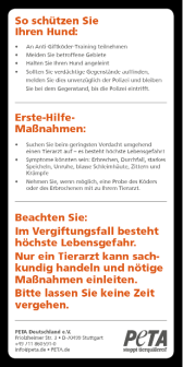 PETAs „Giftköder-Flyer“ steht hier zum kostenlosen Download zur Verfügung.