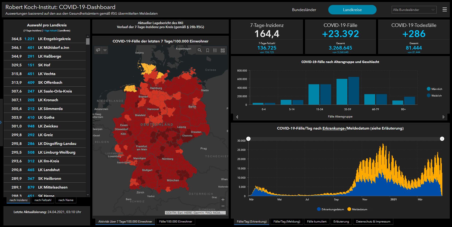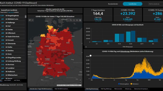 Stand: Samstag 24.4.2021, 00:00 Uhr (online aktualisiert um 09:50 Uhr)