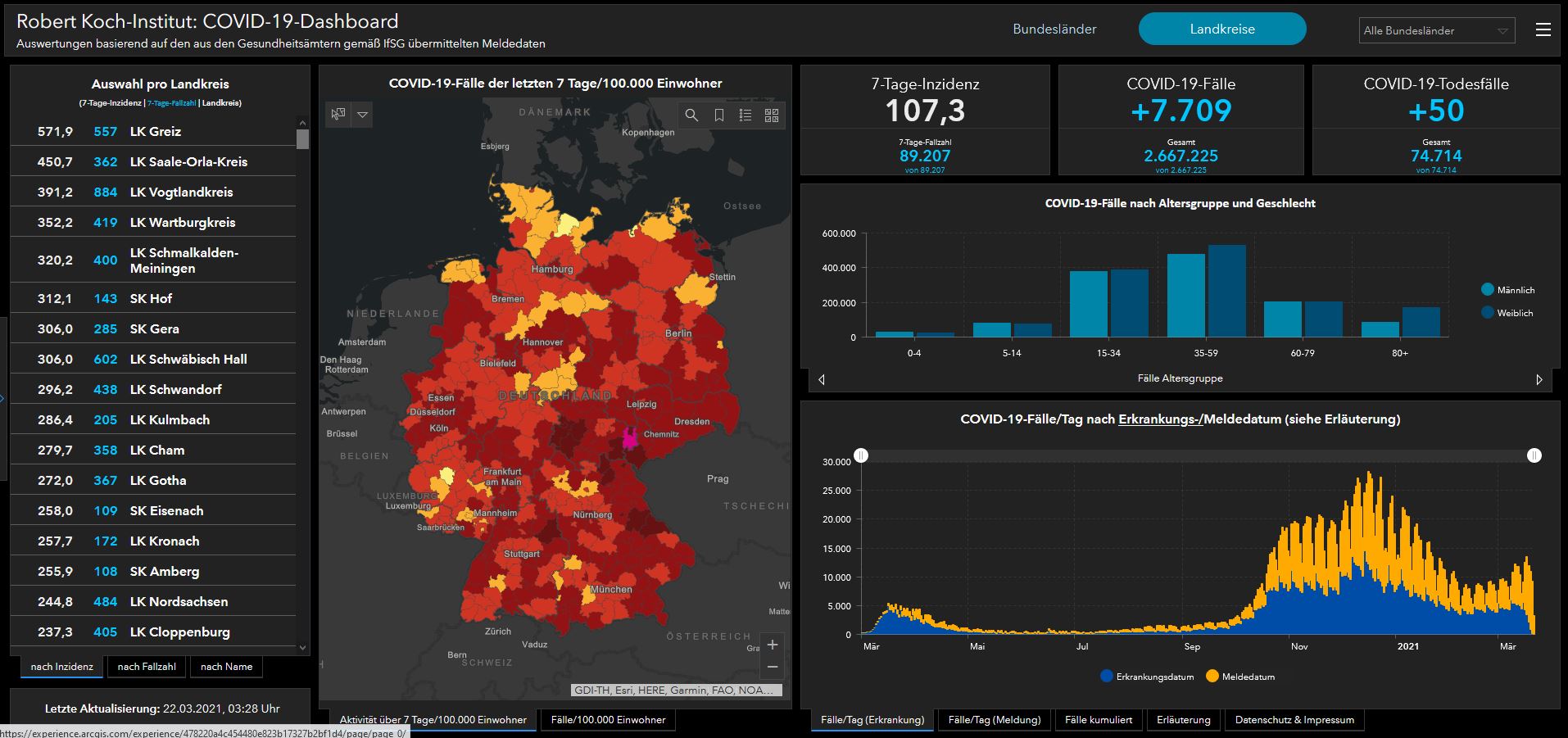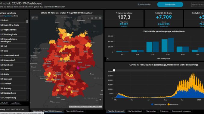 RKI meldet 7709 Neuinfektionen in Deutschland – 50 Todesfälle – 7-Tage-Inzidenz 107,3 – Bundesländerliste – Stand 22.03.2021