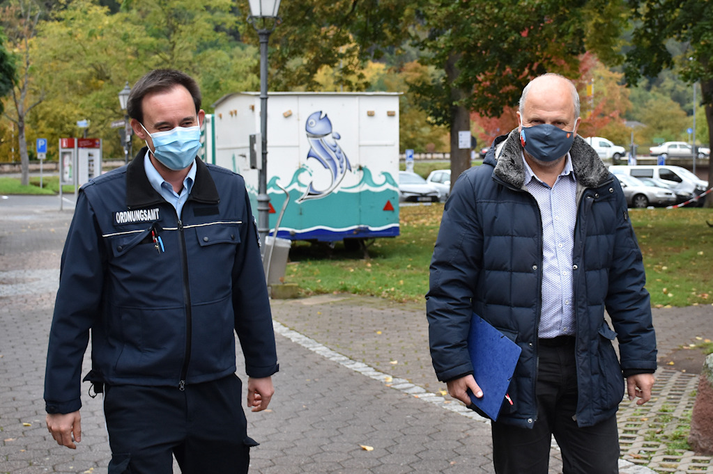 Die Infektionszahlen im Landkreis steigen an. Das städtische Ordnungsamt besucht jetzt verstärkt Gastronomie und Einzelhandel und unterstützt die Betriebe bei der Umsetzung der Corona-Regeln. Beim jüngsten Rundgang gewannen Volker Mohr und Heiko Strauß einen guten Eindruck: Es gab kaum Beanstandungen, die Betriebe gehen überwiegend verantwortungsbewusst mit den Vorgaben um.