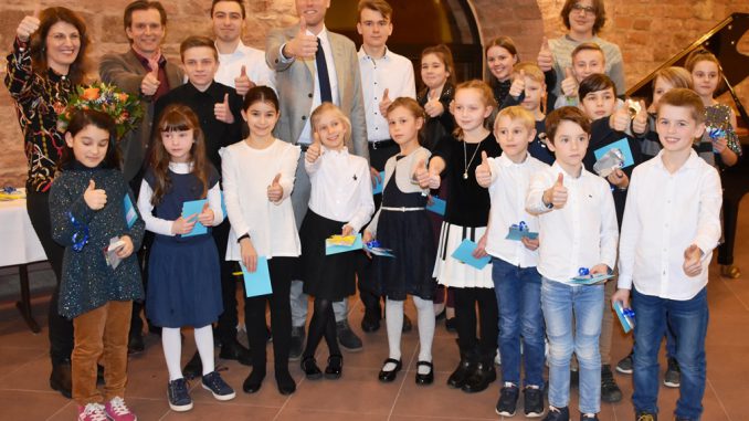 Die Erfolgsserie der Musikschule beim Wettbewerb „Jugend musiziert“ reißt nicht ab. Alle 26 Teilnehmerinnen und Teilnehmer, die im Januar auf regionaler Ebene in Schwäbisch Hall am Start waren, kamen mit einem Preis wieder nach Hause. Allein 15 erste Preise gingen diesmal nach Wertheim. „Eine sensationelle Quote“, staunte Oberbürgermeister Markus Herrera Torrez beim Empfang, den die Stadt zu Ehren der Preisträger am Mittwochabend im Arkadensaal des Rathauses gab. Herrera Torrez gratulierte zu den „fantastischen Leistungen“, zu denen alle jungen Künstlerinnen und Künstler ihren Beitrag geleistet hätten.
