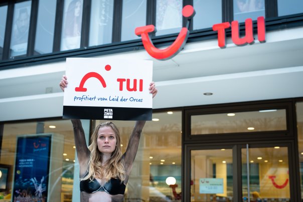 „Schwertwale sollten nicht mehr in Parks eingesperrt werden dürfen! Dass TUI noch immer finanziell von ihrem Leid profitiert, ist ethisch inakzeptabel“, so Jeannine Frasch, Leiterin des Nürnberger PETA-ZWEI-Streetteams. „Wir fordern das Unternehmen daher auf, dem Beispiel von Thomas Cook, vtours und vielen anderen zu folgen und Wal-Parks endlich aus seinem Portfolio zu streichen.“