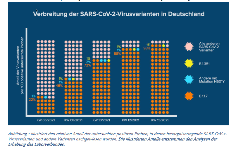 Also wie wir wissen sind an den folgen von Covid-19 varianten über 70 000 Menschen in Deutschland gestorben. Nun da jetzt der Corona-Mutant B.1.1.7 (siehe Grafik unten) über 90% der Infektionen ausmacht, ist ja zu erwarten, das dieser gefährlichere Mutant zu mehr Todeszahlen führt. So wurde ja Prognostiziert. Die Inzidenzwerte wurde festgelegt und die Notbremse ab heute in ganz Deutschland gezogen.