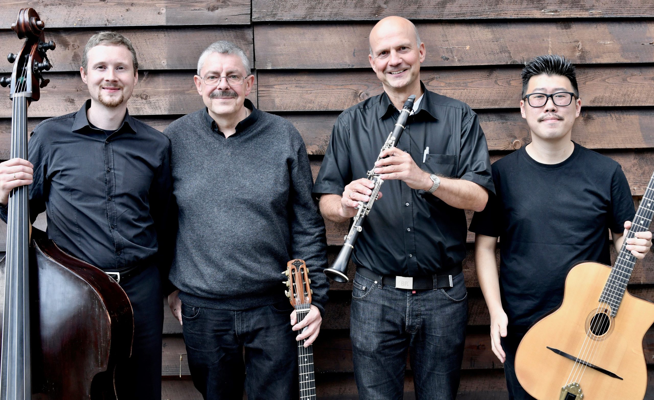 Das vielgefeierte Ensemble “Djangology” ist der Tradition des unvergesslichen Django Reinhardt mit seinem “Hot Club de France” verpflichtet. In der Besetzung Sologitarre, Rhythmusgitarre, Kontrabass und Klarinette spielt das Quartett originale Kompositionen von “Django” und einige Werke anderer Komponisten, die “Django” sehr geschätzt hat. Vielen ist nicht bekannt, dass zum “Hot Club de France”, auch der Klarinettist Hubert Rostaing gehörte. Er hat für lange Zeit den genialen Geiger Stéphane Grappelli ersetzt. Grappelli war in den Wirren des zweiten Weltkrieges in London geblieben, Django dagegen nach Paris zurückgekehrt. Dort machte er viele schöne Aufnahmen mit Hubert Rostaing. Genießen sie traditionelle französische Gypsy Musik und die einzigartige Hommage an Django Reinhardt erstmalig im Schlösschen. Das Konzert hat eine Pause und dauert gute zwei Stunden.