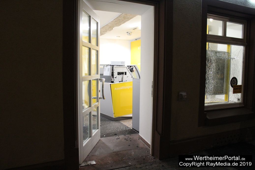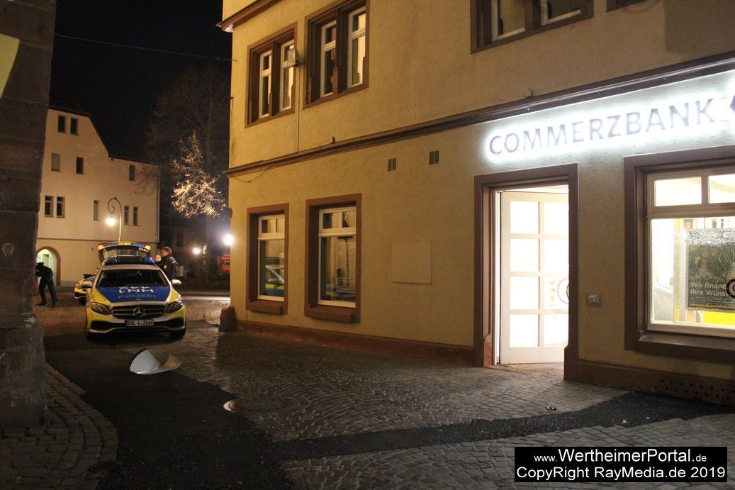 Heute Nacht 21.02.2019 , gegen 04.00 Uhr wurde in der Wertheimer Altstadt bei der Commerbank Filiale der Bankautomat gesprengt