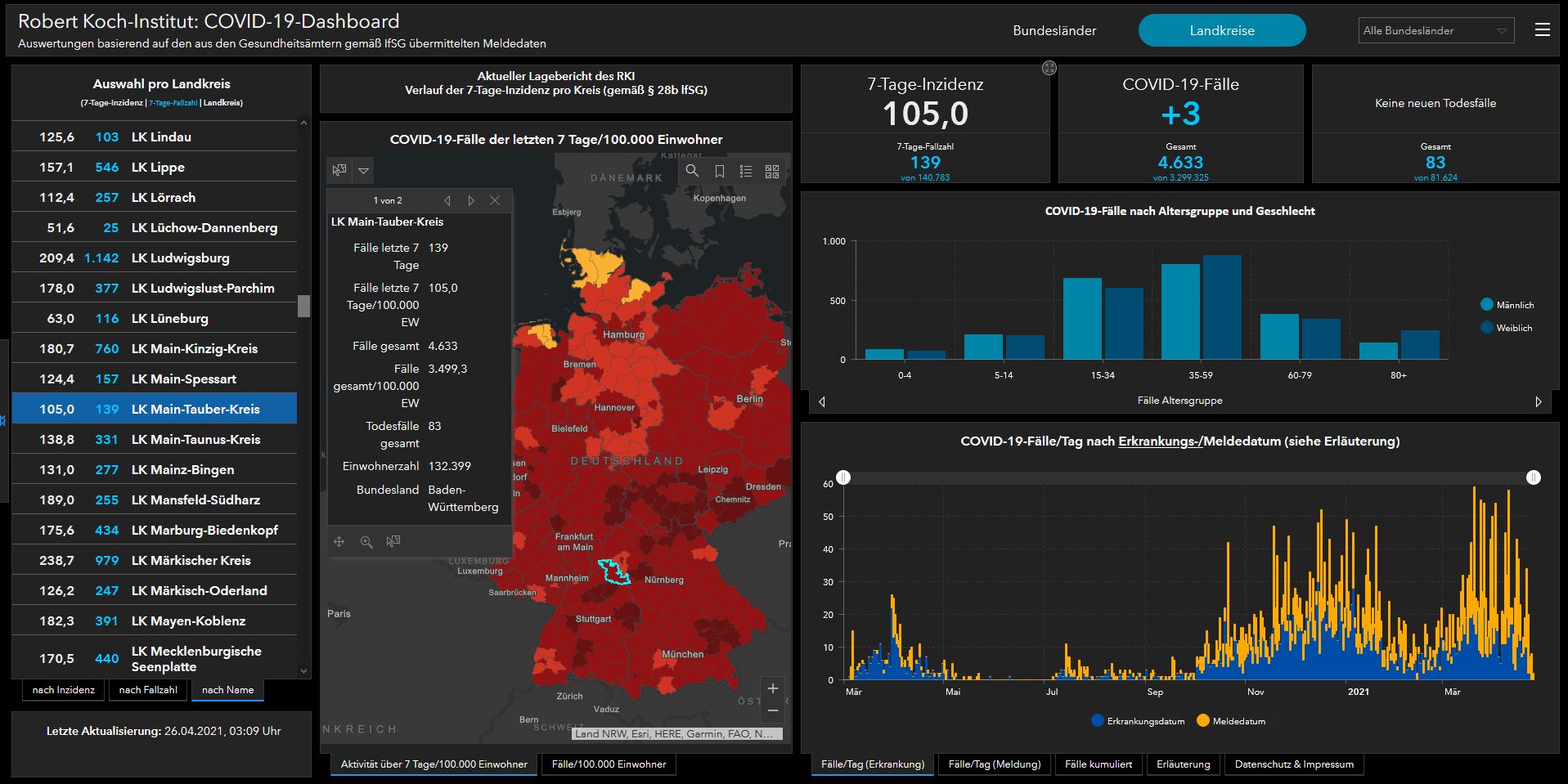 Wertheim / Main-Tauber-Kreis: 3 Coronavirus-Infektionen – Kein Todesfall– Inzidenz 105 – Zahlen 26.04.2021