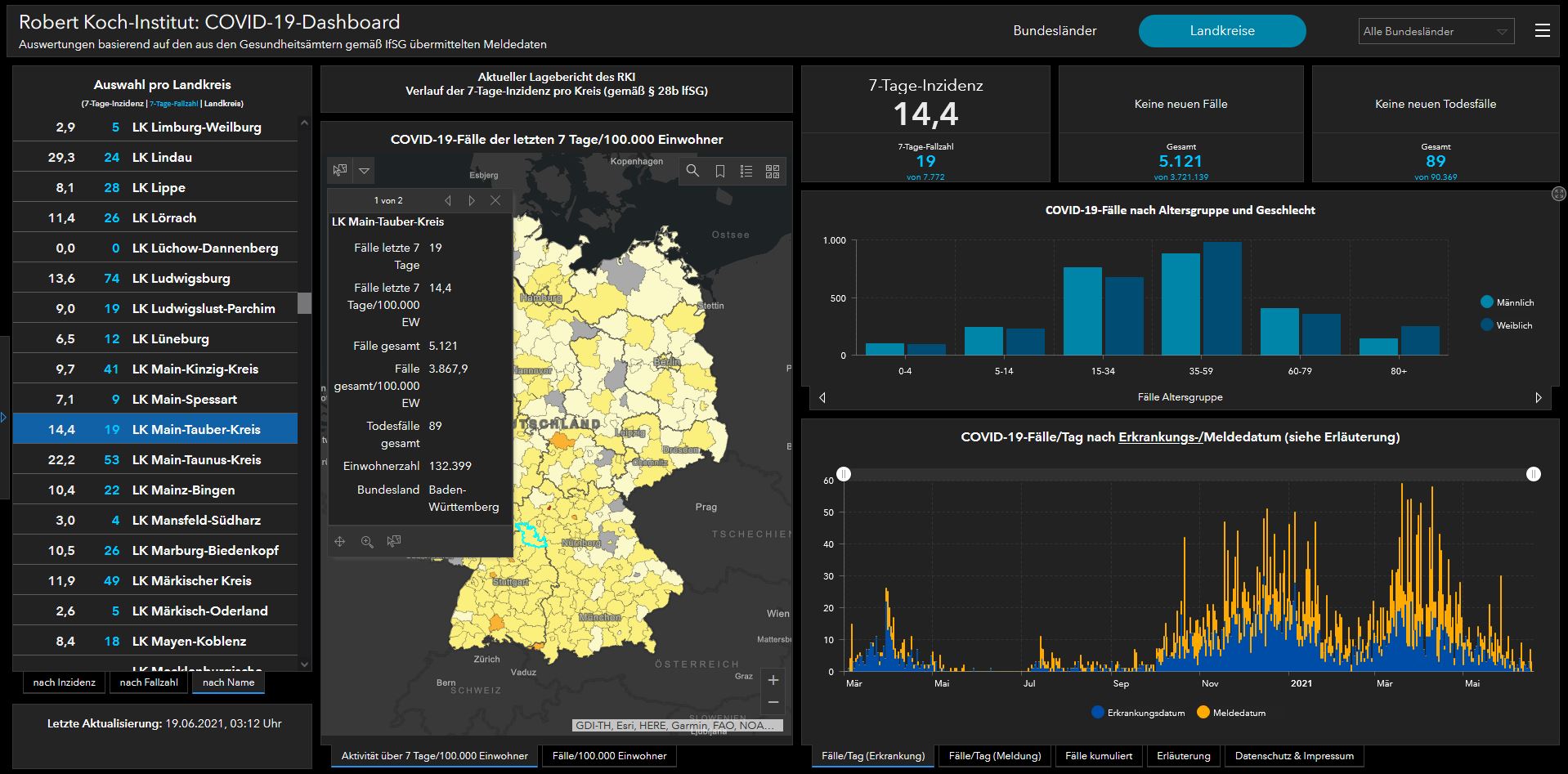 Wertheim / Main-Tauber-Kreis: Aktuelle Coronavirus-Infektionen – Inzidenz 14,4 – Zahlen 19.Juni.2021