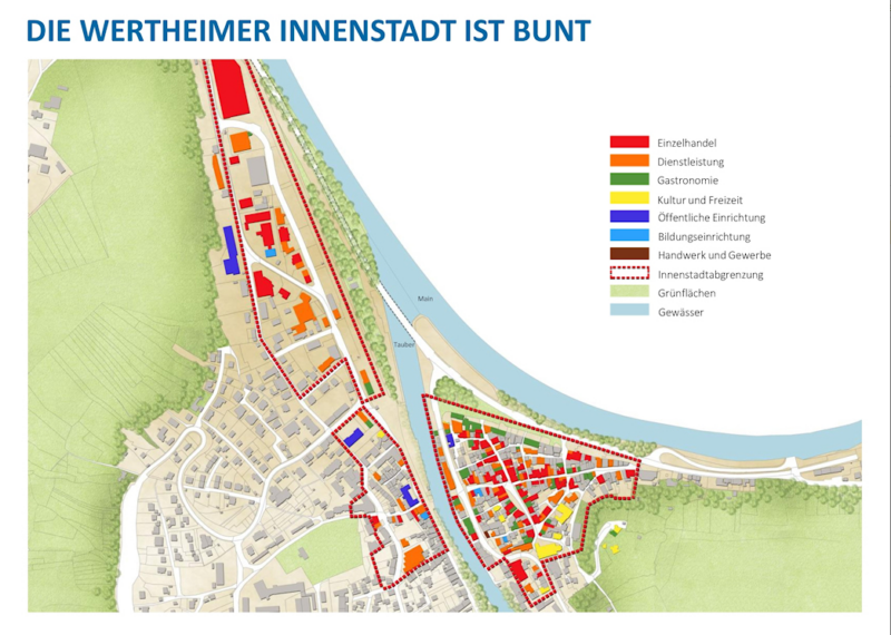 Der stark ausgeprägte Nutzungsmix ist eine Stärke der Wertheimer Innenstadt. Darstellung: GMA