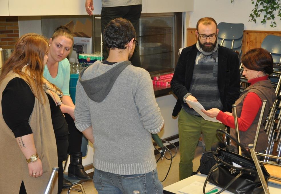 Heute vor Ort waren: Vanessa Lundry, Iwona Mayr-Danisz, Sergej Neichel, Marion Rosini, Bianca Schomber sowie zwei aus Syrien stammende Neu-Wertheimer: Manal Karkanawy und Abdul Wahab Sermany.